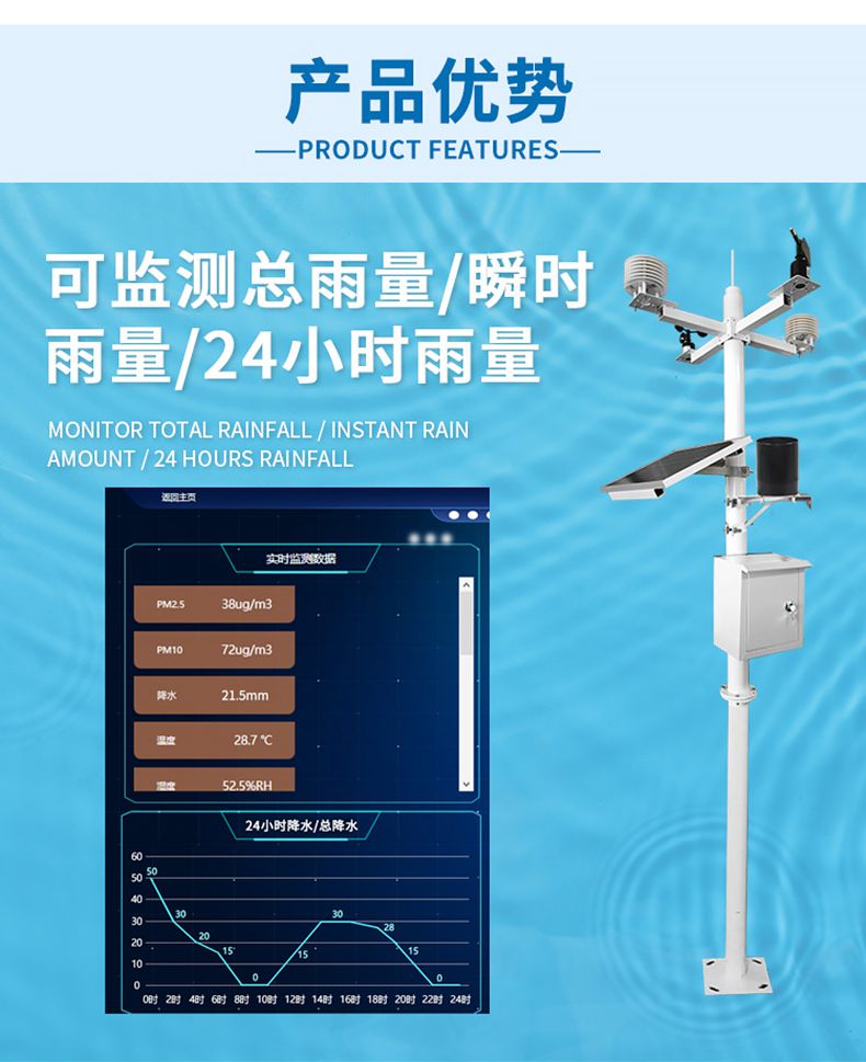 室外環境氣象站可以監測風速風向(xiàng),雨量,蒸發(fā)量等參數,參數自…